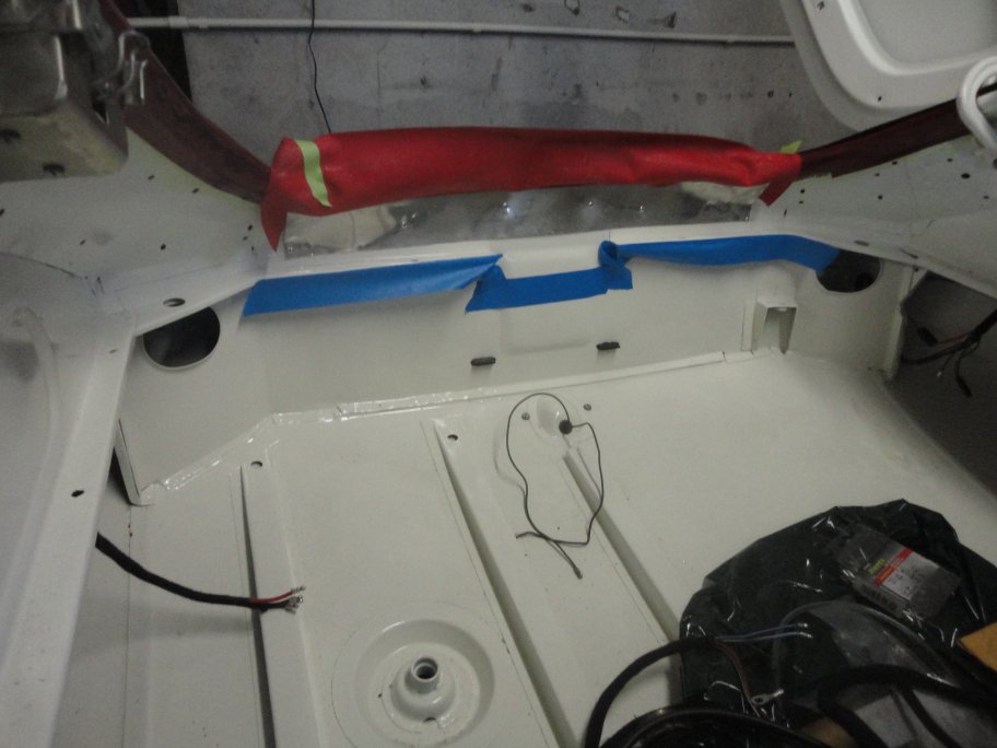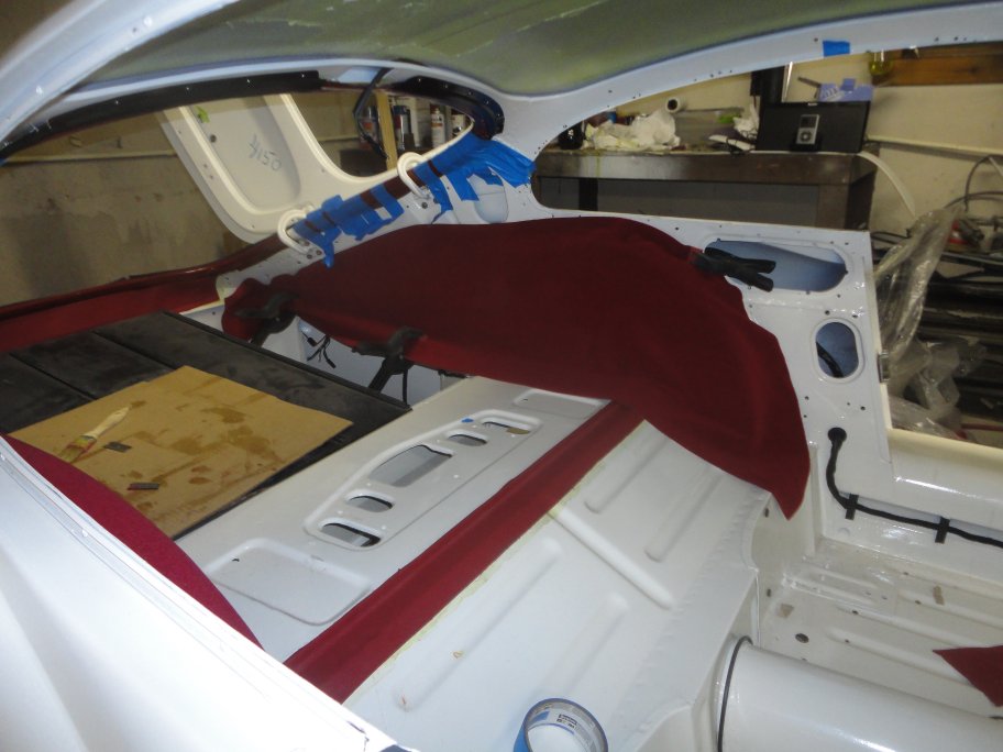 10) The next step was to cover the roof reinforcements with fabric that matches the headliner material. The fabric has hollow tubing sewn into to it. The tubing