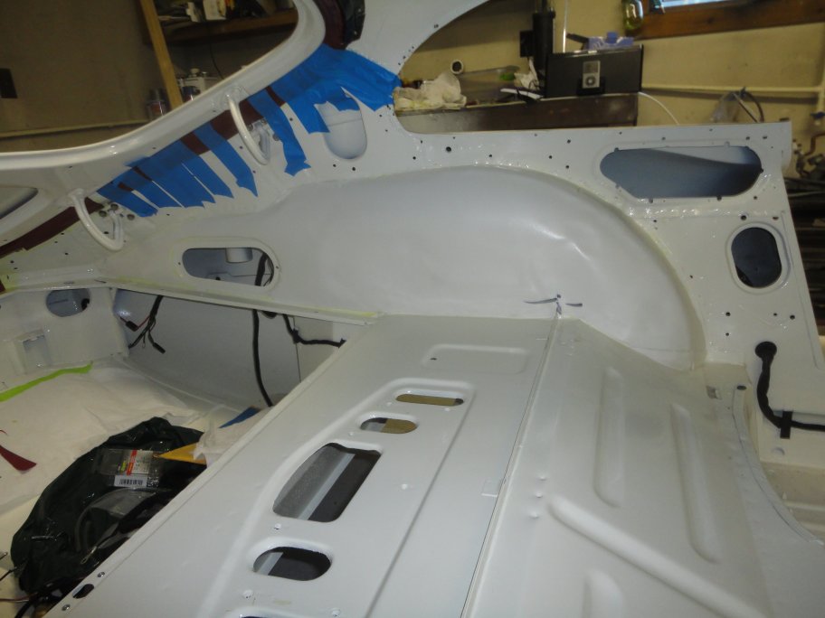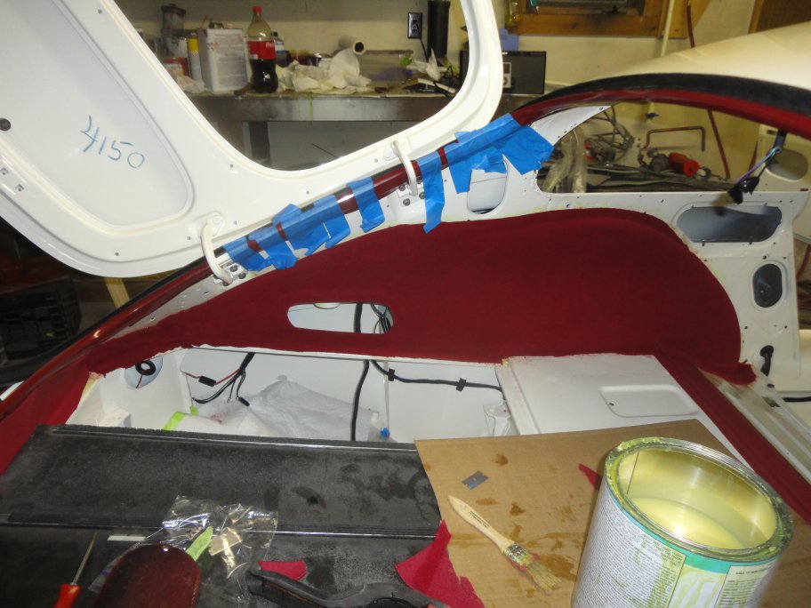 17) Before the wheel arches were covered, a strip of vinyl needed to be applied to the rib that goes between them. As a standard practice, the area beyond where the contact cement