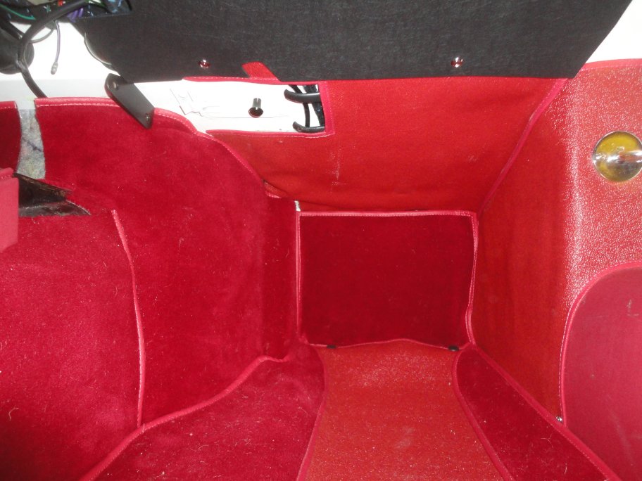 66) To make installation easier, the jute padding was glued to the underdash harduras. Then the pieces are glued to the underside of the dash.