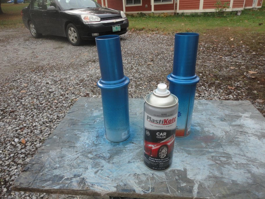 2) Here is a picture of what a professionally restored set of original Girling shocks look like in the correct Girling Blue. The original colored paint can't be bought from the Jaguar part suppliers. So without an original shock with color available for computer matching, you are on your own as far as color.