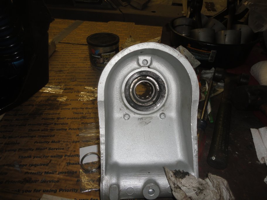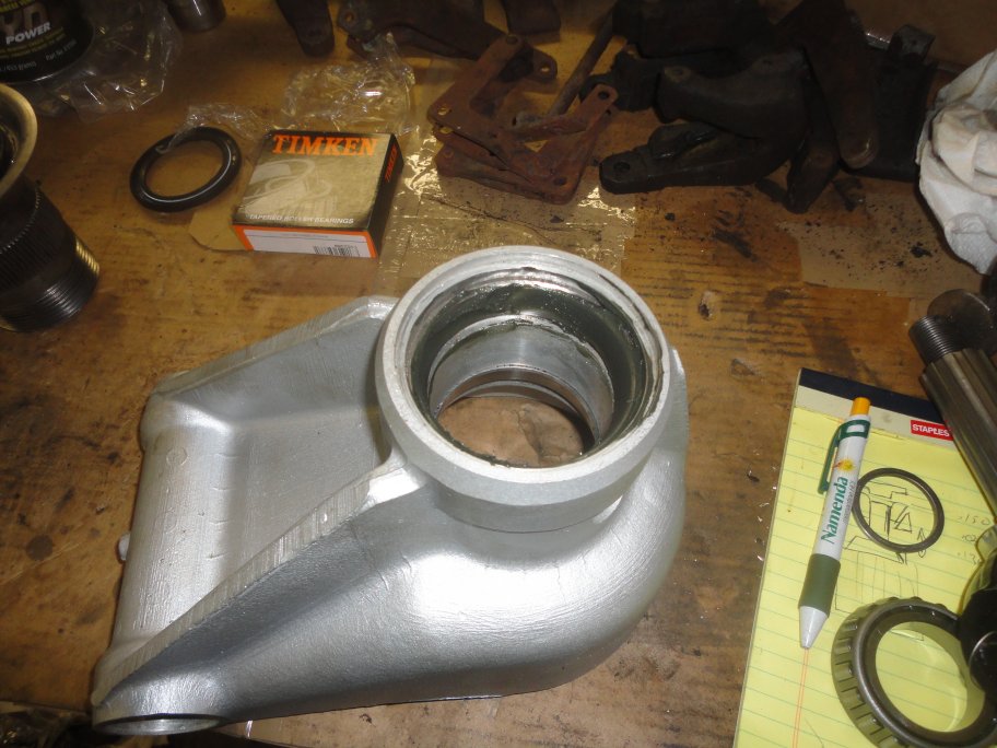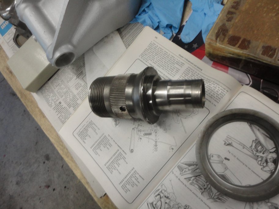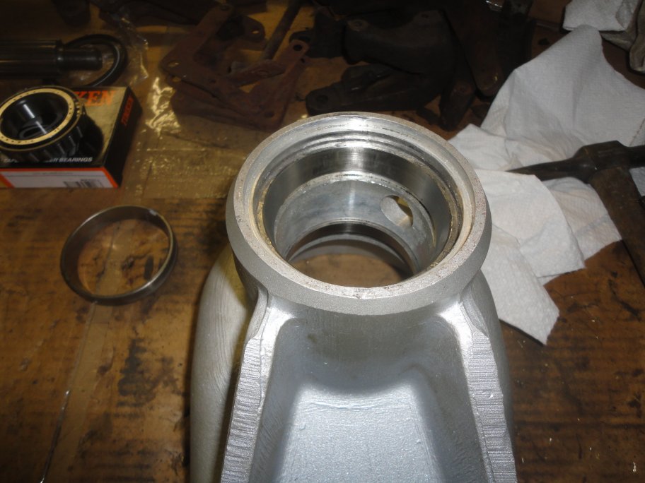 9) This is where the assembly becomes tricky. The inboard inner bearing needs to be installed. According to the service manual you need to create a special adaptor that has a 0.150" step on it. You are supposed to drive or press the bearing in with the adaptor, which will result in a very large float/endplay in the bearings. You are supposed to measure the float that is produced and the shim thickness required to give you about 0.005" worth of float. Since I could not or did not want to create the special adaptor I did things a different way.