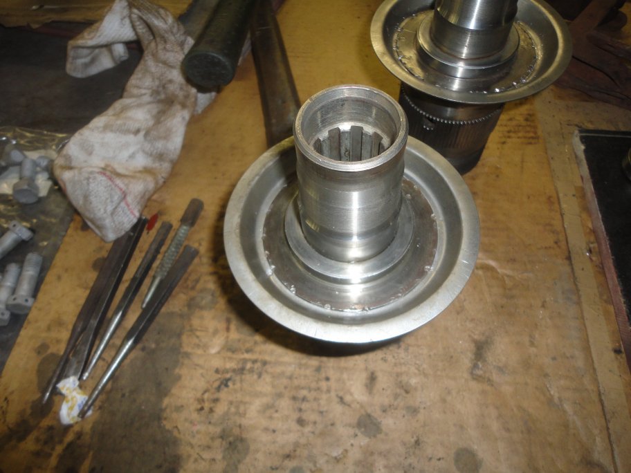 13) The next step is to measure the distance between the inner bearing face and the end of the inner hub. If I had made the special adaptor it would have been 0.150". I don't have pictures of how the measurement was made. I set the assembly on a flat stone at work in our QC department. I used a dial indicator to measure the location of the two surfaces and calculated the difference. On the hub assembly in this picture sequence, I had measured 0.134".