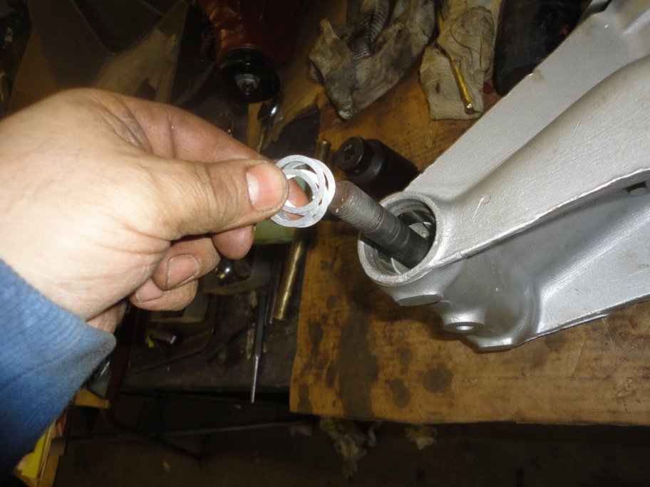 20) Next goes the shims. If you are installing new bearings, you should install more shims then necessary to get a large enough float to measure. Usually 0.010" - 0.020".