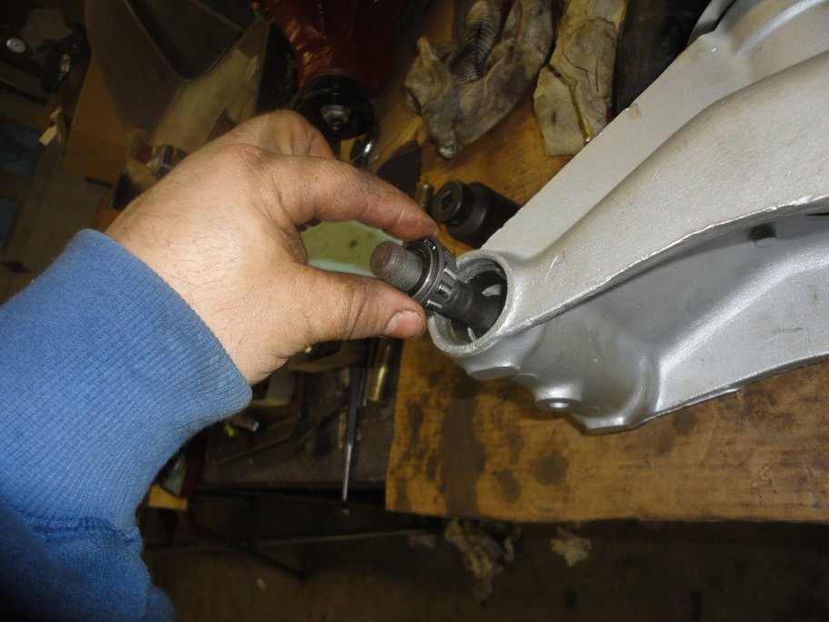 29) The last piece to go in is this washer that applies pressure to the felt seal when the hub assembly is installed. It is a good idea to tape these in place until you are ready to install the hub assemblies on the lower arm.