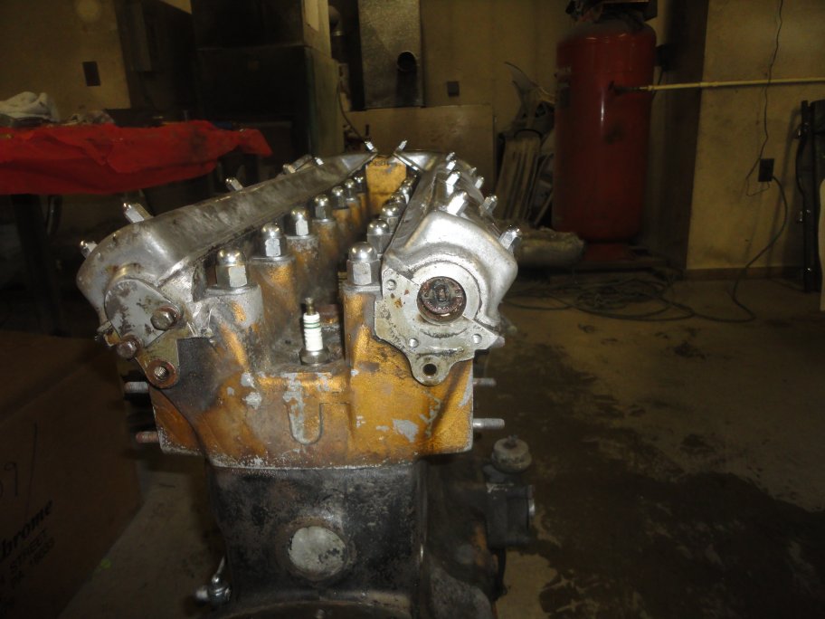 18) The cam timing gears are bolted to the cams and are wired in place. The gears have to be unbolted and moved inboard in order to pull the head. In this picture