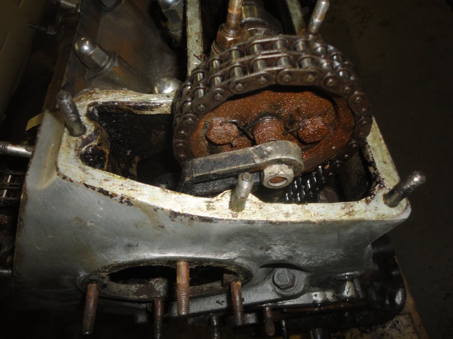 19) In this picture the cam timing gears are unbolted and pulled inboard.