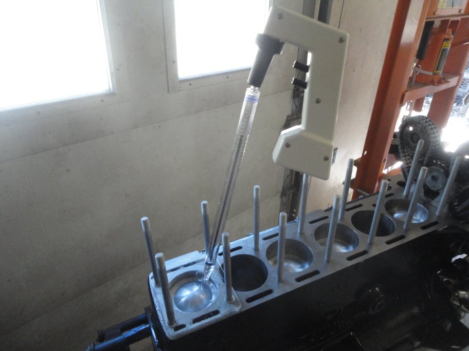 12) You must also measure the void in the head. Ray recommend using a wooden dowl to fill the sparkplug hole, buy I opted for an actual sparkplug. You should make sure that both valves are closed or else the mineral spirits will leak out.