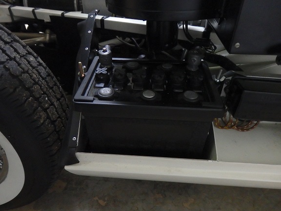 10) The last piece to install prior to starting the engine was the battery. I installed a reproduction Lucas battery from the Antique Battery Company. Their reproduction battery was actually a sealed battery with a fake top with caps. Under the caps is a shallow reservoir that can be filled with water to make it look like the old style battery.