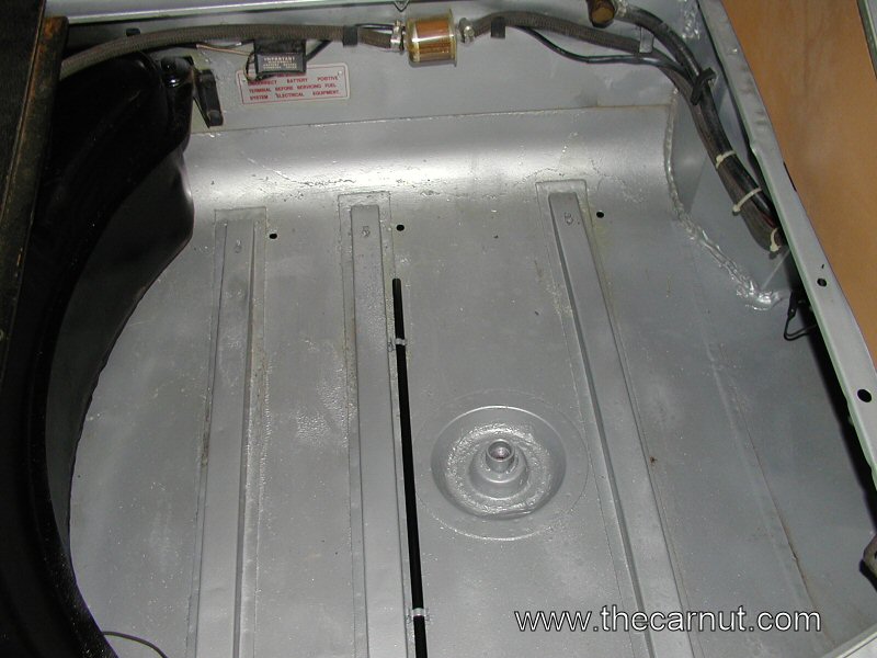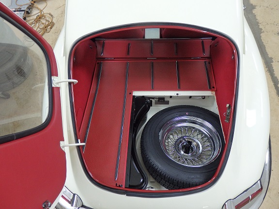7) The spare tire covers the clips, so that's how things are going to be left until I have a definitive answer. I also need to buy and original tool roll and hammer to complete the boot area.