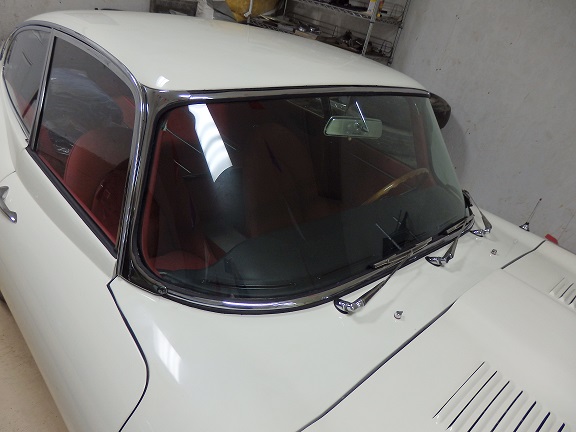 16) The windshield moldings were also used. The top one and the right windshield pillar moulding had to be bought used off ebay. The upper and lower mouldings fit inside a lip in the windshield rubber. It took a bit of twisting to get them to fit properly.