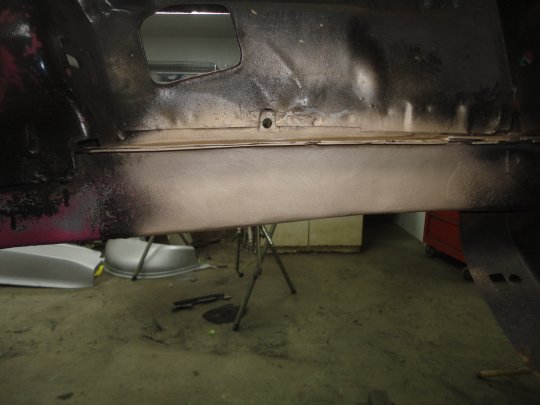134) Then I had to make a new end piece that was ruined by the body shop. In this picture I was fitting the new piece in place prior to buttwelding it to the filler panel.