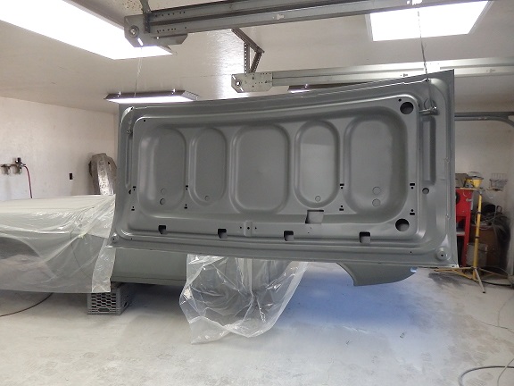 193) Here it is with 3 coats of DP40LF Epoxy primer and ready to install on the car. The hinges only needed to be sandblasted and primed. I removed the springs from the hinges primer to priming. I gave them 1 coat with the hinges closed and another coat with the hinges opened.