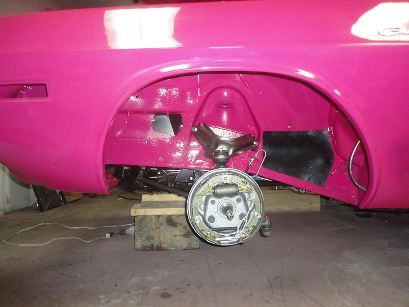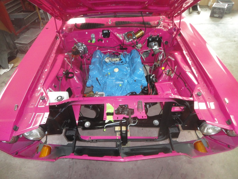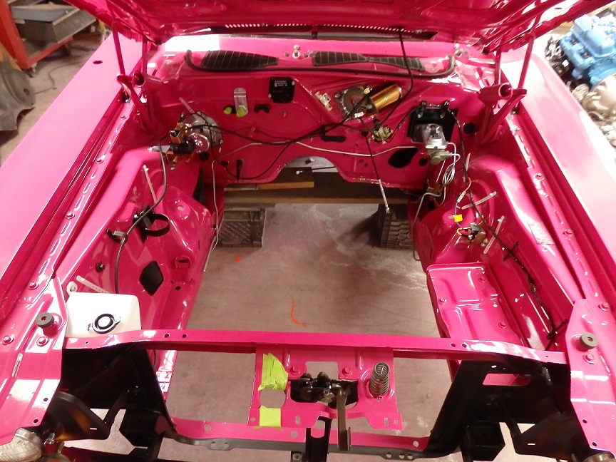 358) Before installing the engine, it's a good idea to get as much of the engine compartment components installed as possible. Remember, the steering column should not be installed until after the engine is in.