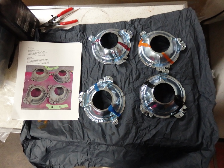 382) The parking lamps needed new pigtails and some freshening up. I bead blasted the housings and painted them. To get the original yellow chromate look I just misted on some of the leftover Quasmoline that I used
