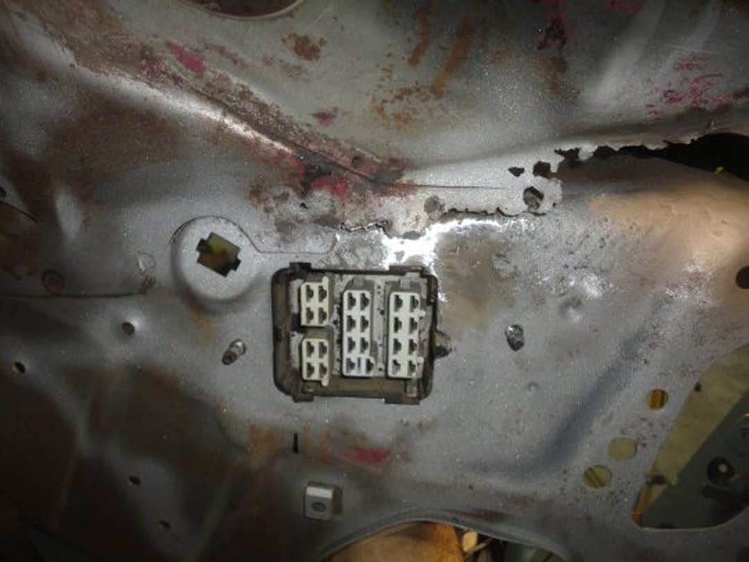 14) There was a rust hole at the main harness firewall connection. I welded in a new piece larger than I needed.