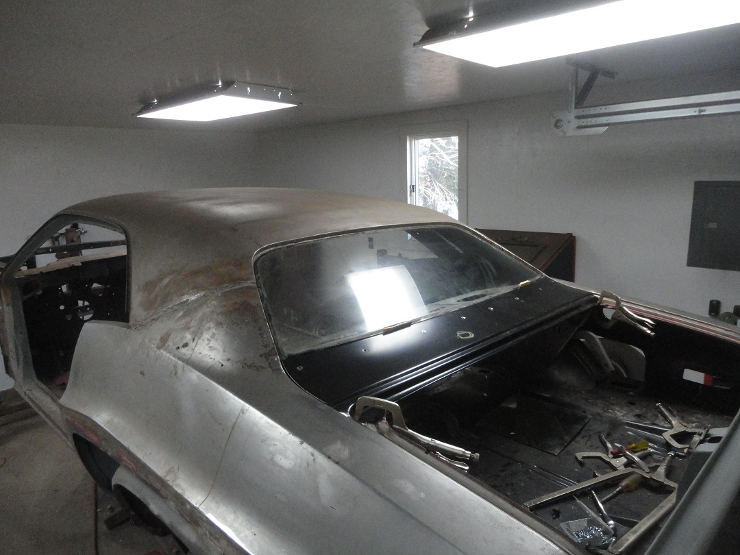71) Also prior to welding I predilled all of the holes for the rear window moulding clips and for the vinyl top molding. Having the holes