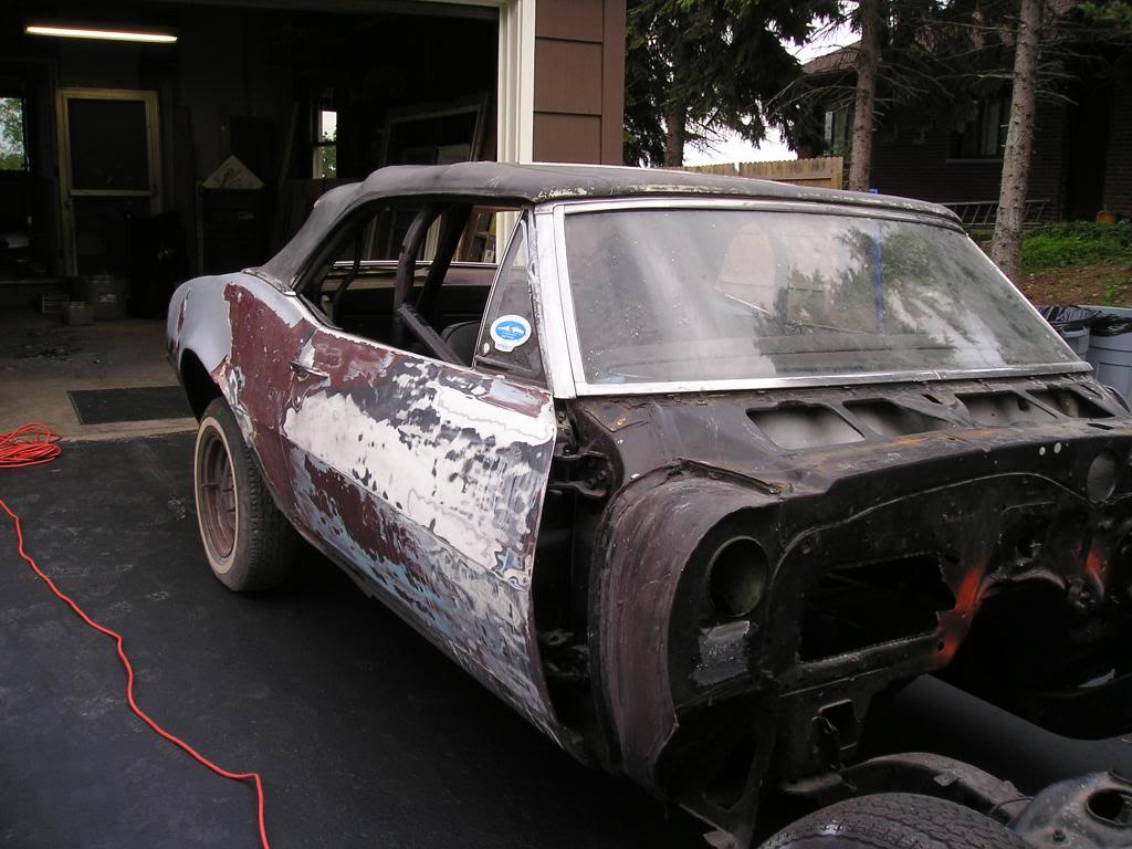 He also started to remove layers of paint, perhaps in order to identify the color of the original pinstripes. Were they standard Black for the RS/SS or were they