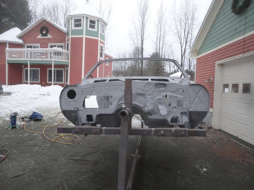 With the dash welded in, the firewall and dash were put in epoxy primer.