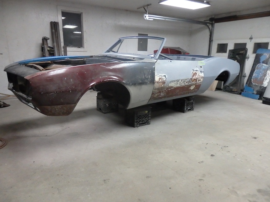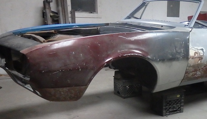 I started with the best used 1967 fender I could find at Camaro Specialties. As one would expect by all those colors, it had been previously worked on. The second pictures shows the worst