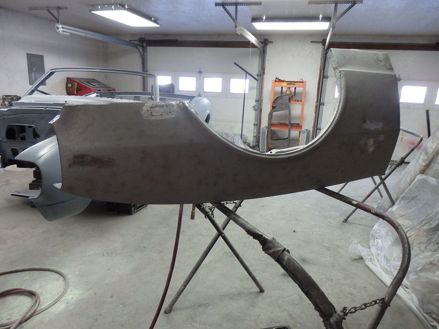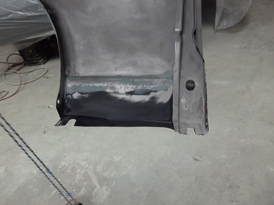 of, which was uncovered after sandblasting. To fix it , I purchased an AMD lower fender repair panel and butt-welded in only the section I needed. The repair panel had the correct