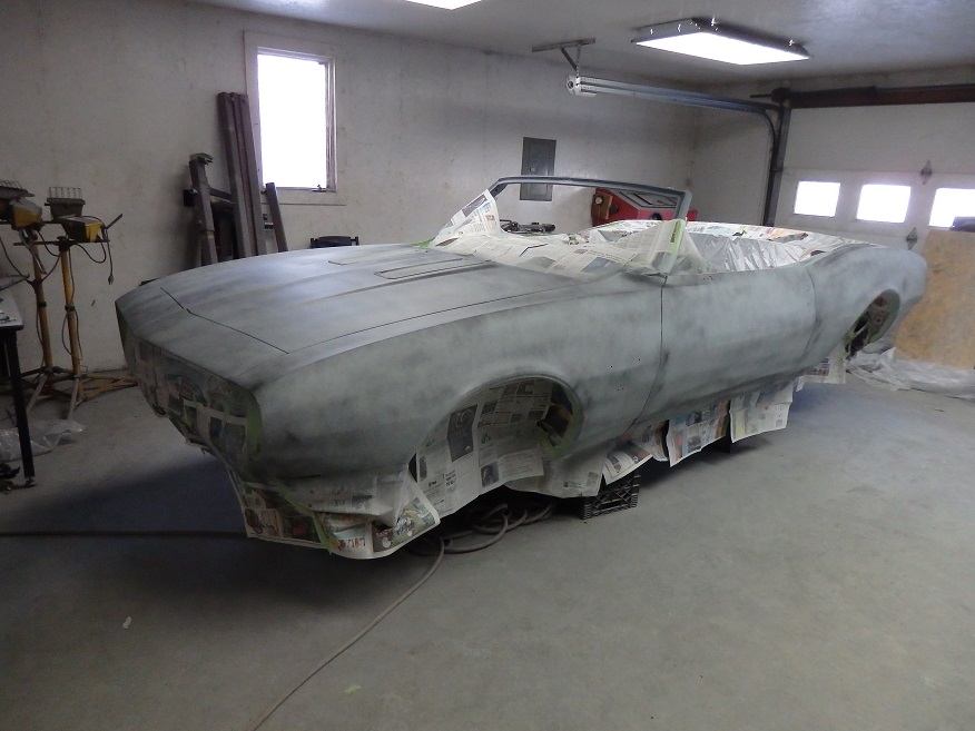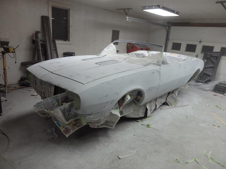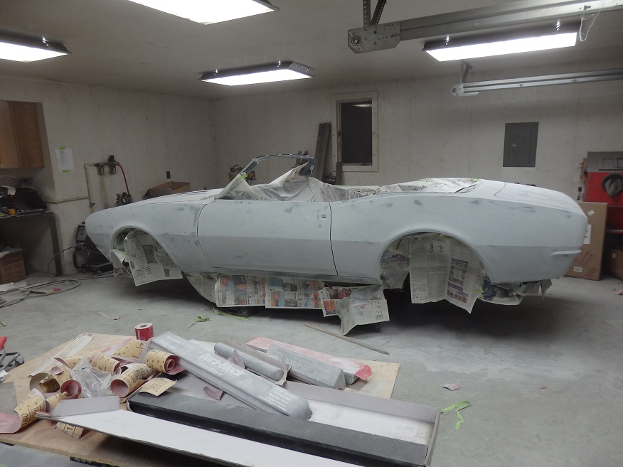 With blocking done, I primed the car with DP50LF Epoxy primer again. This time I added a little more reducer so that the primer would lay down flatter. Basically it was mixed as a sealer. At this point the car looks great. There are no defects that need repairing. It is simply sand and paint. Though that has it own challenges. |