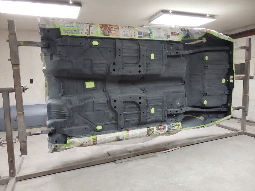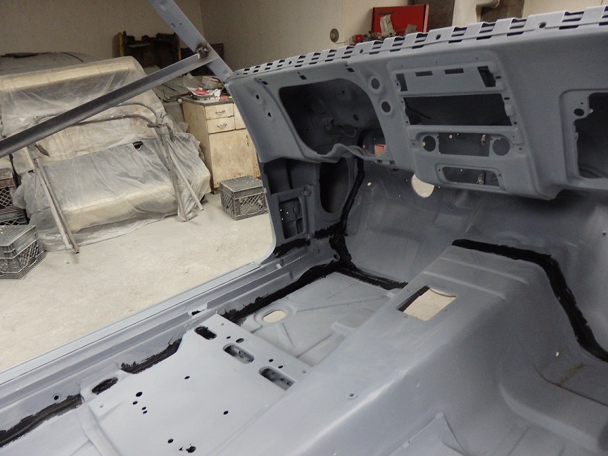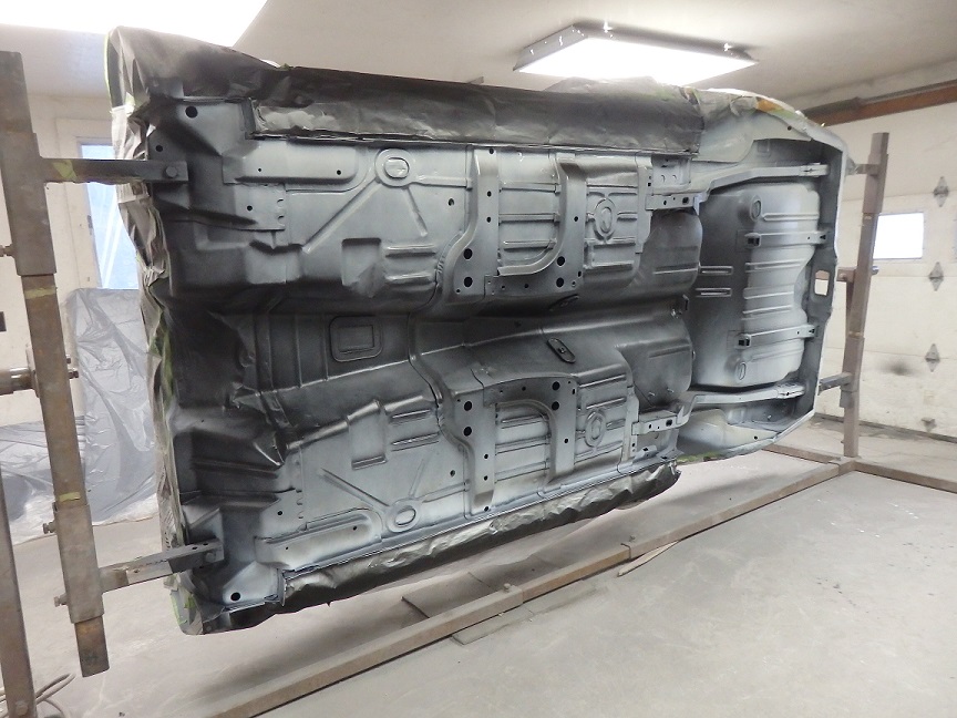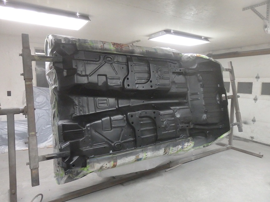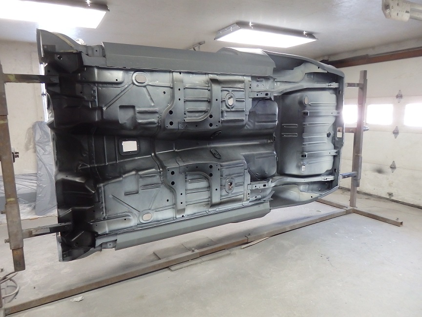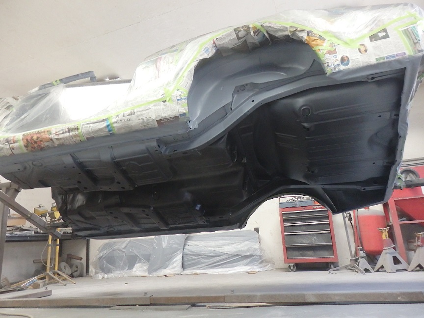The undercarriage had previously been primed, so it had to be sanded. I sealed it with DP90LF black epoxy primer mixed as a sealer. Once it flashed, I painted the undercarriage with SEMs Hot Rod Black. It had the correct 30% semigloss look I needed. This replicated the black factory primer, but with the added protection of a urethane paint. This is where the judges and many people think I should have stopped..... |