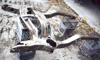 Here is the subframe after sandblasting and wire wheeling just before painting.