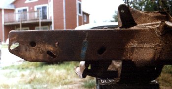 Before removing the surface rust the subframe was cleaned and inspected for original factory markings. Here is a factor inspection mark (in Blue). This mark and another beside it on the bottom (not shown) were the only marks I found. They were faithfully reproduced after the subframe was painted and installed.