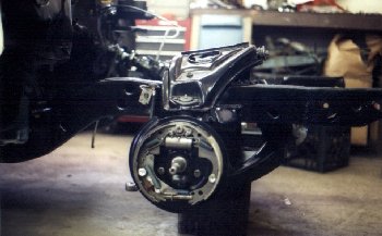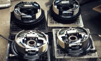 front coil springs with the motor in, but it was still at the machine shop.Here are the fully restored brake assemblies. I purchased everything I needed from Kanter Auto Parts. |