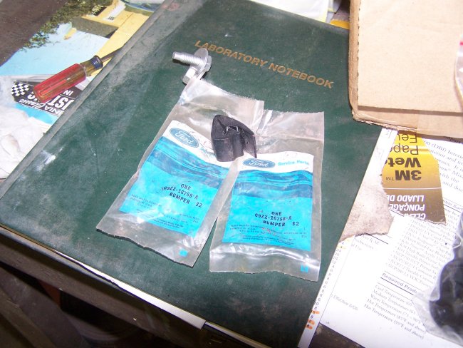 Ford put these rubber bumpers on the tops of the fenders for the upper valance panel to rest on. They tended to fall off since they were not held on very well.