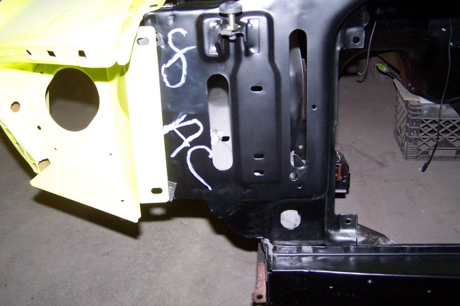 Here's I picture during the fitting of the right fender. You can see the other factory markings that were reproduced. 'AC' does infact mean Air Conditioning, However, I have yet to identify what '8'