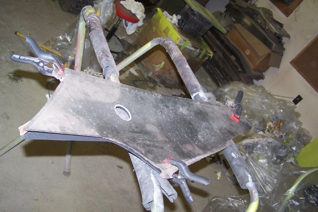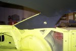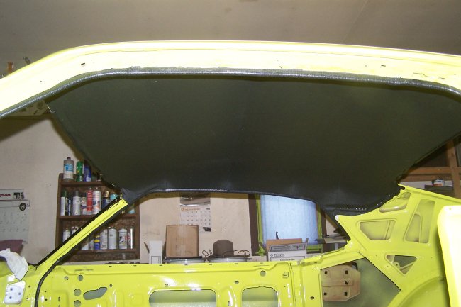 In this picture the LH sailpanel is installed. The panel is glued to the underside of the rear window opening, but not wrapped around the lip. It is glued around the lip by the quarter window however.