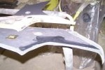 11) Along the bottom of the winshield, about 1/4 from the bottom, Ford applied a long strip of rigid foam. Perhaps it was there to divert water. You will have to make a new one.