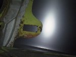 up of an indentation about a foot long that steps down towards the front by the drain plug. This is usually the first part to rust