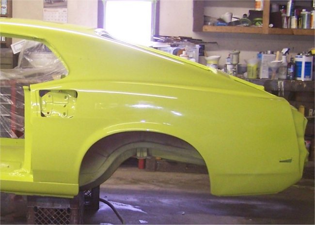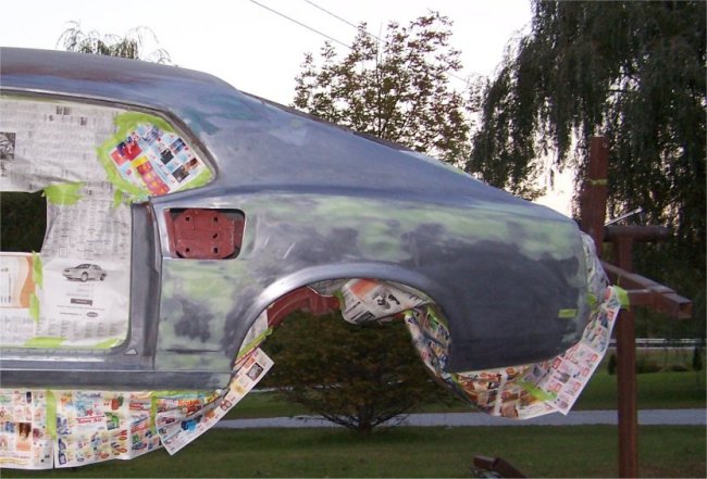 In this picture all of the work is done. The quarter is wiped down and is masked for the primer coat. |