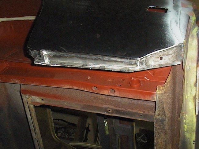the template onto a piece of new sheetmetal. The new piece is clamped in place and butt-welded in. Here is a picture of the finished