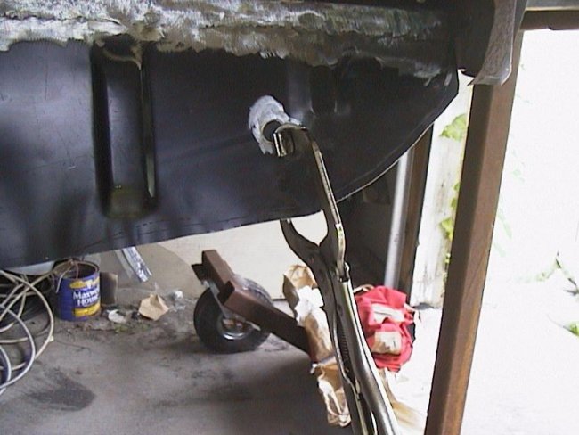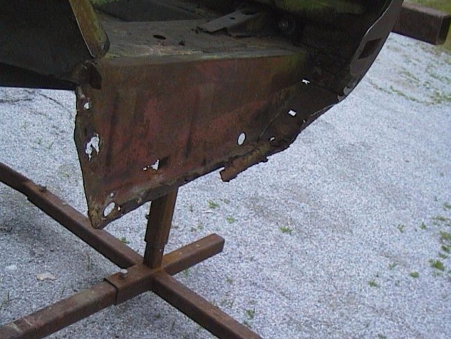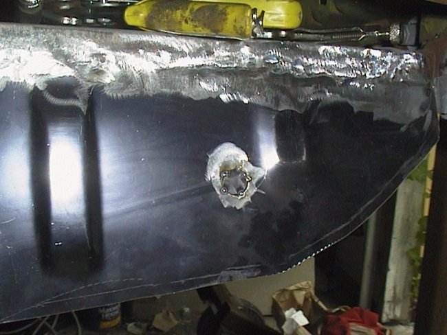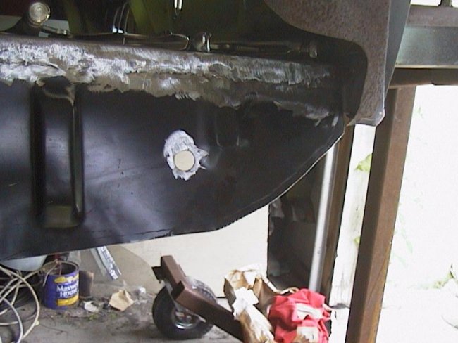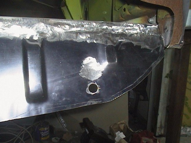 Here is the new dropoff welded in place. From the earlier pictures you can see that the rear hole, which is were the reverse light