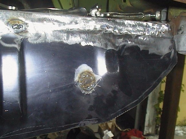 of the back after the weld has need ground down. All that is needed is a skim coat of filler to make the surface smooth before priming.