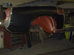Here all of the welding has been complete except for the lower rear indentation which needs to be reproduced on this car. If you wish to learn about this repair it is describe on the next page here.