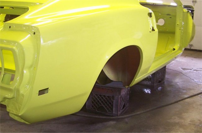 Here is the quarter panel after it has been painted, sanded and buffer.