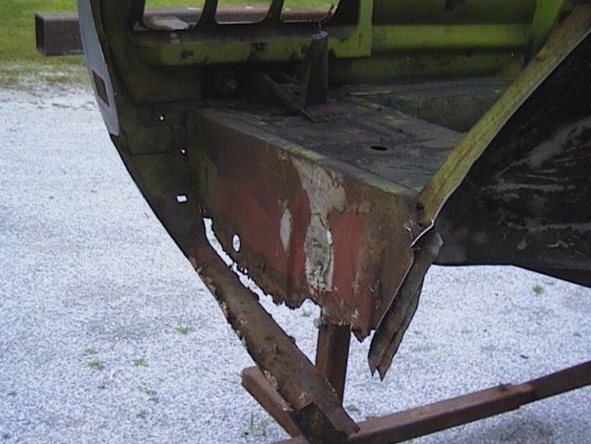 Here is what was left of the Right Trunk Dropoff once the quarter panel and windowscreen bondo job was removed. It is definitely not savable.