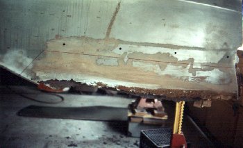 Leaving enough material to overlap the panel at the top, I cut out the rusted section from the car. This revealed the lower trunk extension rust damage that needed to be repaired.