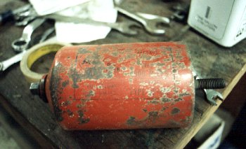 This is the oil filter canister. You can faintly see the original writing on it. Before there