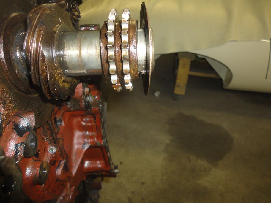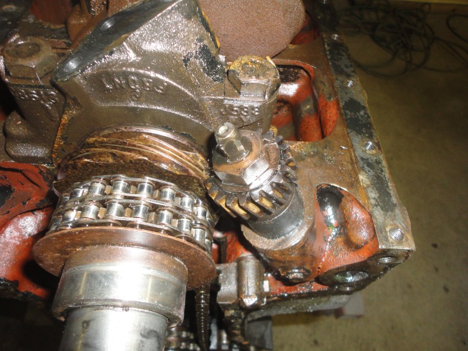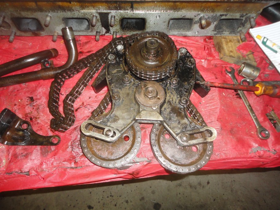 30) The timing gears and chain assembly comes off simply by removing 4 bolts. New chains and guides will be need.